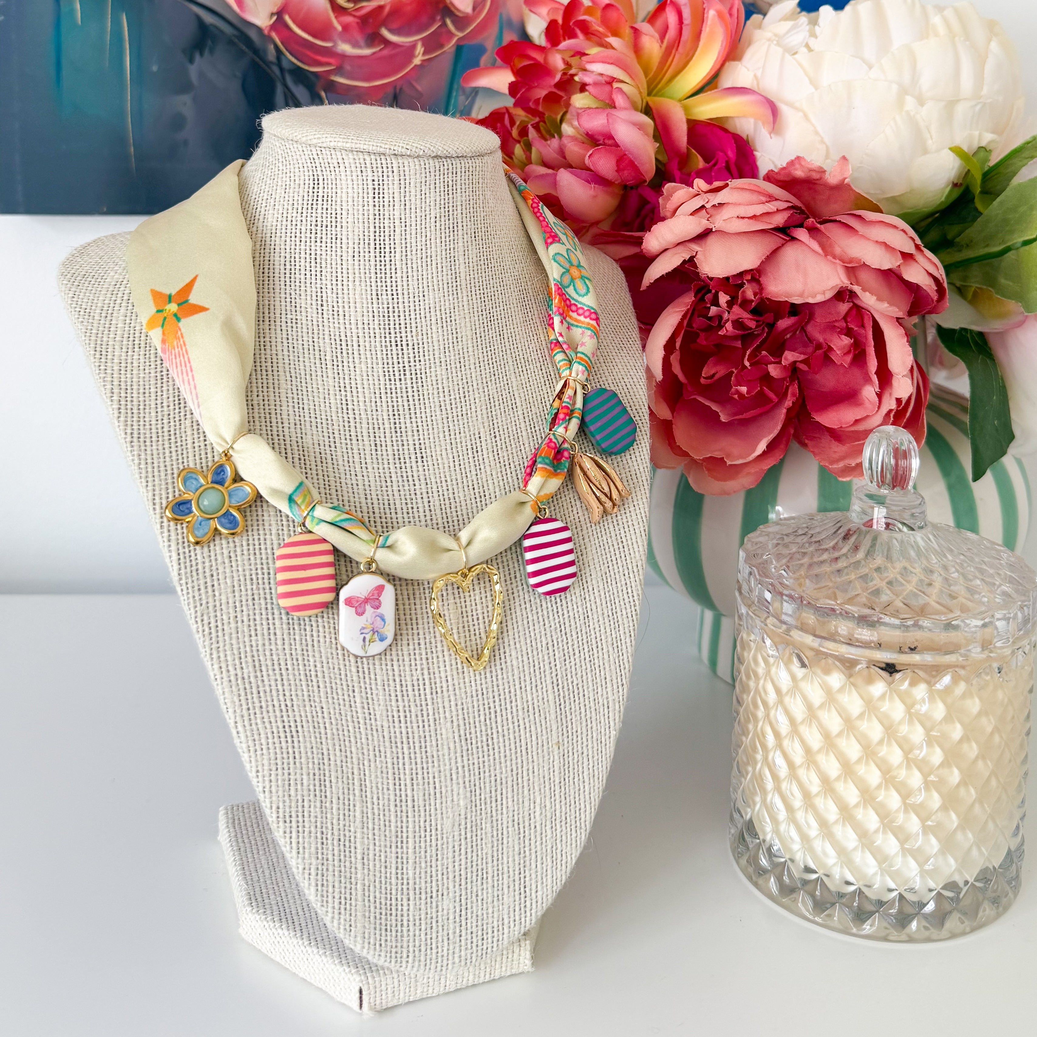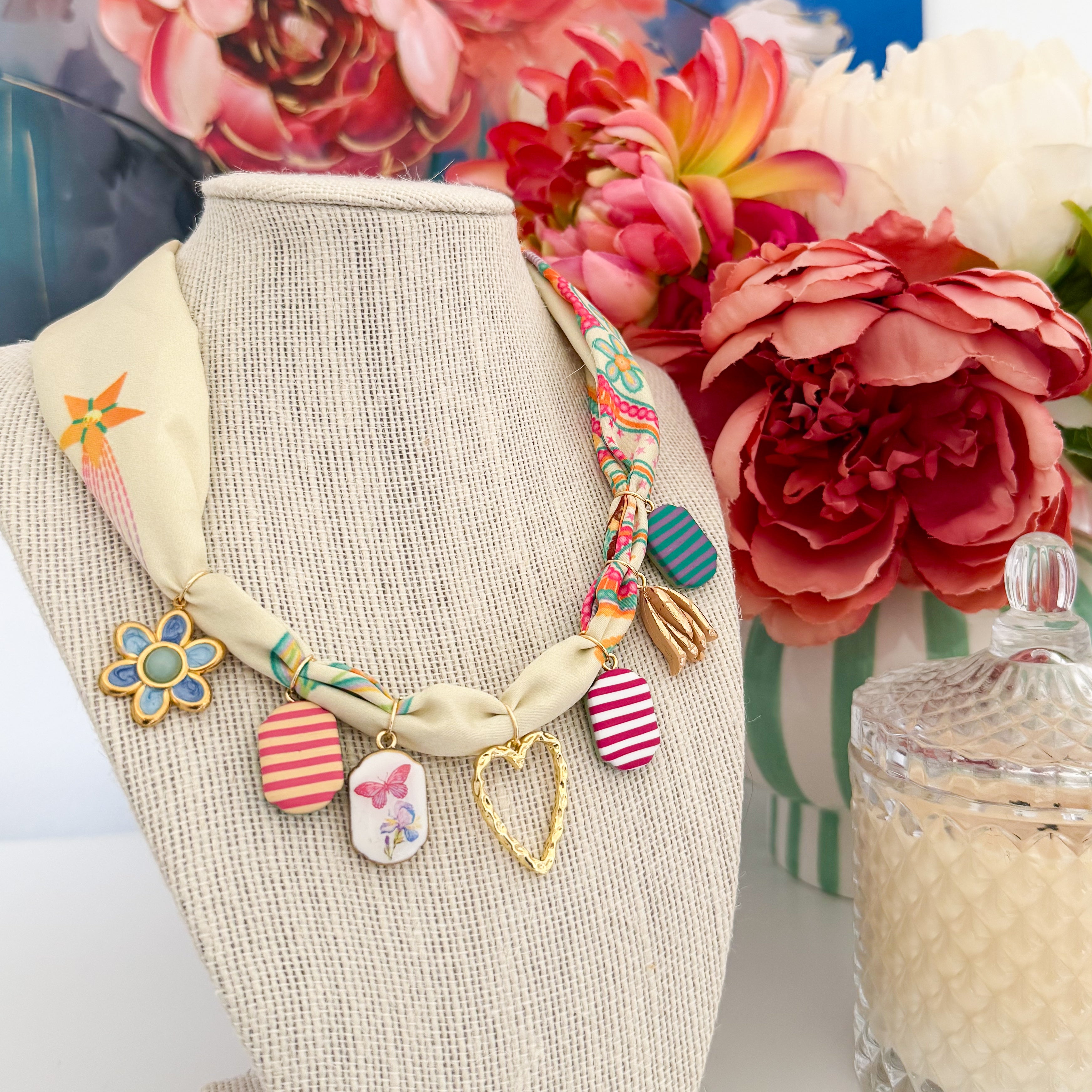 Handmade charm scarf necklace